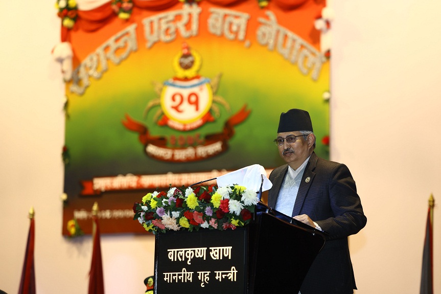 समारोहमा गृहमन्त्री बालकृष्ण खाँडले जनताको विश्वास प्राप्त र राष्ट्रको भरोसा योग्य रहेको सशस्त्र प्रहरी बल, नेपालले चुनौतीपूर्ण अवस्थामा समेत आम नागरिकको जीवन रक्षा तथा विषम परिस्थितिमा राष्ट्र र नागरिकाको सेवा सुरक्षा, उद्धार, राहत विरतणलगायत क्षेत्रमा निर्वाह गरेको भूमिकाको प्रशंसा गरे।