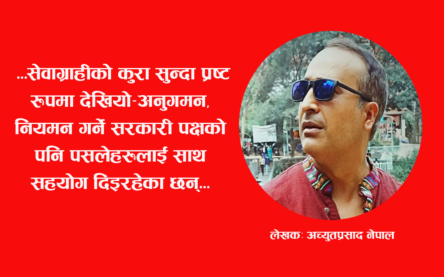 सम्बन्धित निकायसँग गुनासाे गर्याे वा माैखिक उजुरी गर्याे भने भनिन्छ-लिखित उजुरी आएकाे छैन । अनि सुनेकाे समस्याबाट पन्छिनु सरकारी अधिकारीहरुकाे संस्कारनै हाे । याे समाधान होइन । समस्या उजागर हुनेबित्तिकै स्वतः अनुगमन गरेर कारबाही गर्नुपर्छ । स–साना कुरा बेवास्ता गर्दा देशको अर्थतन्त्रमा नोक्सानी पुग्छ र नागरिकको आस्था कमजोर बन्छ । त्यसाे भएकाले राज्य र जनताप्रति उत्तरदायी सरकार कहिले आउँछ हाेला ?