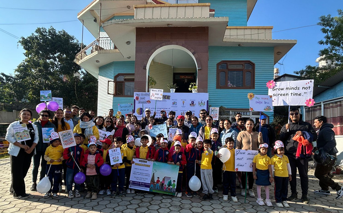 ‘खेलौं, हिँडौँ, स्क्रिन होइन’ नारासहितकाे वाकाथन कार्यक्रम