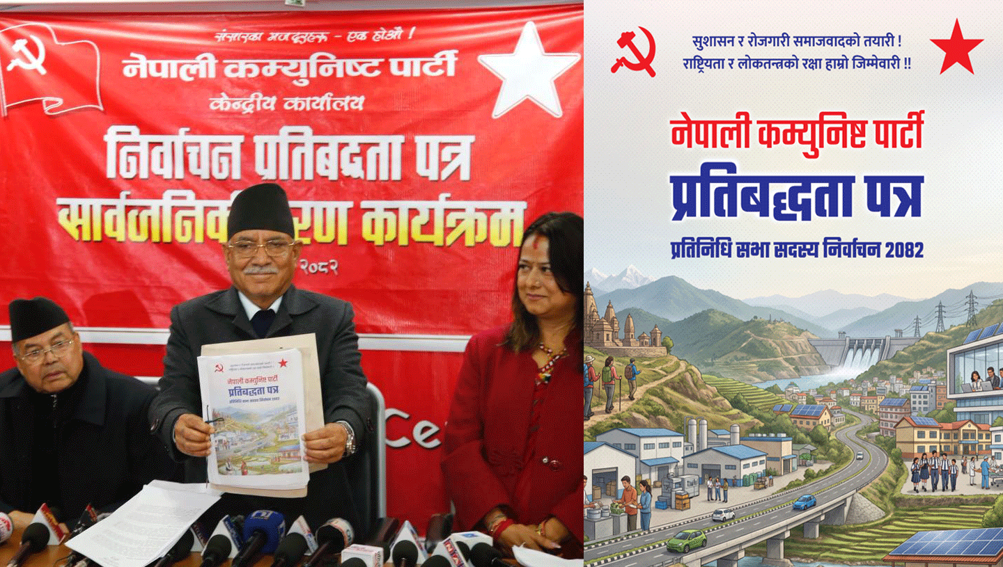 नेपाली कम्युनिष्ट पार्टीले आर्थिक सुधारको नयाँ चरणलाई विशेष जोड दिँदै प्रतिनिधिसभा निर्वाचन २०८२ का लागि प्रतिबद्धता पत्र सार्वजनिक गरेको छ ।
