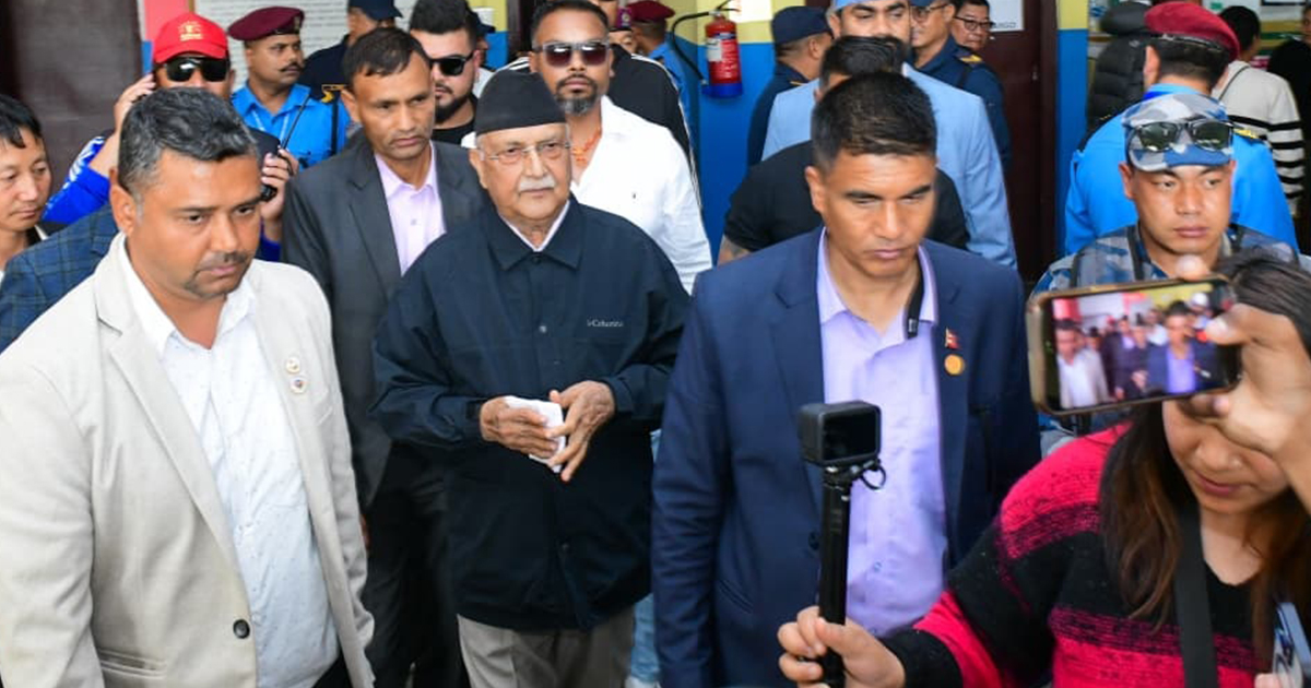 काठमाडौ । झापाको भद्रपुर विमानस्थलमा सञ्चारकर्मीहरूसँग कुराकानी गर्ने क्रममा एमालेका अध्यक्ष केपी शर्माले चुनावको वातावरणबारे यसै भन्न सकिने अवस्था नरहेको बताएका छन्।